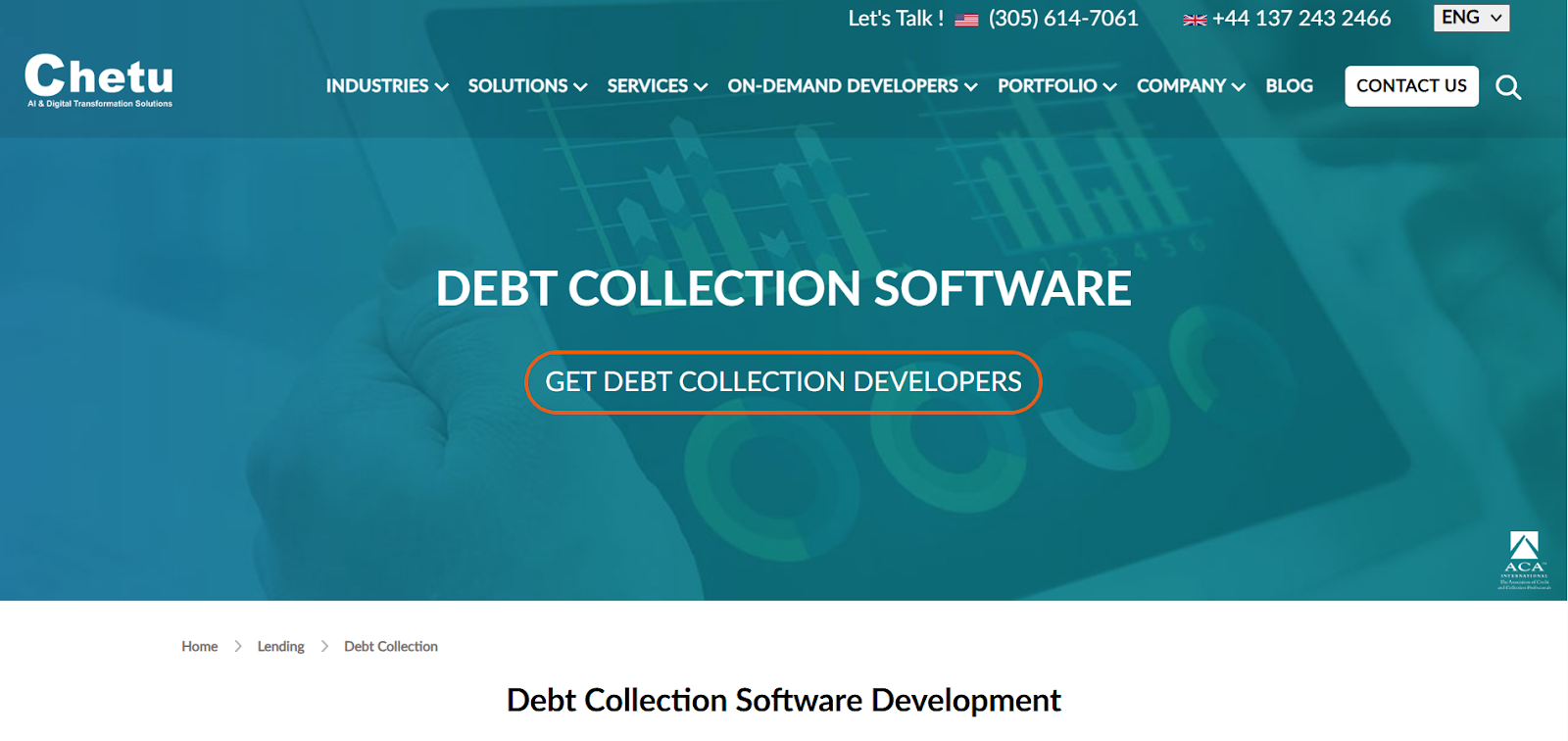 Chetu provides custom-built advanced debt management software for collection agencies that require deep workflow customization and system-level control. Rather than offering a rigid SaaS product, Chetu designs tailored debt recovery platforms aligned to an agency’s operational structure, compliance needs, and portfolio complexity.