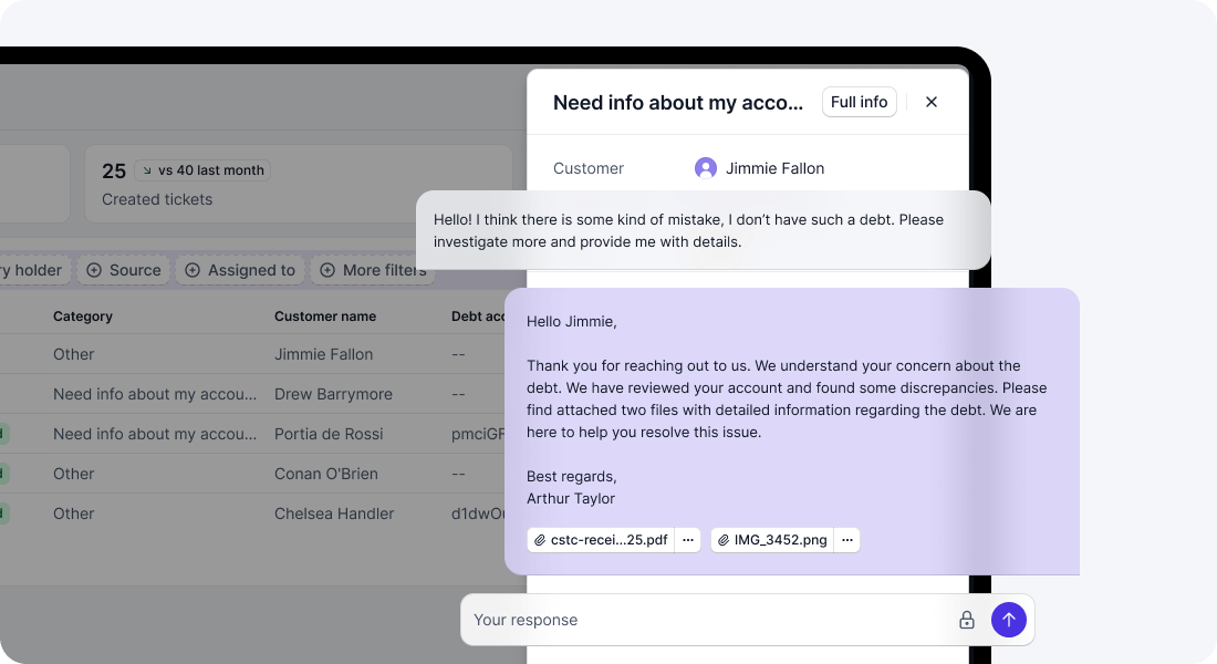 Tratta’s fully integrated Console transforms operations. Facilitate two-way agent-consumer messaging, manage tickets, and document every compliant interaction within a unified end-to-end solution.